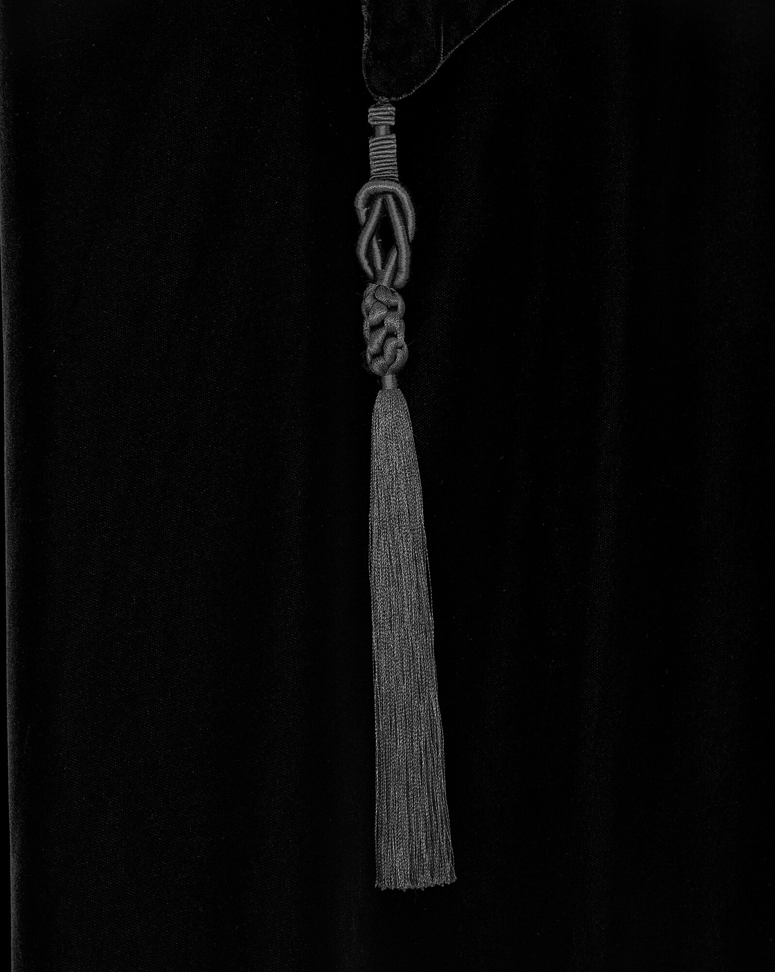 Cape made with RESPONSIBLE VISCOSE, featuring a high neck and draped shawl with decorative cord tassel.