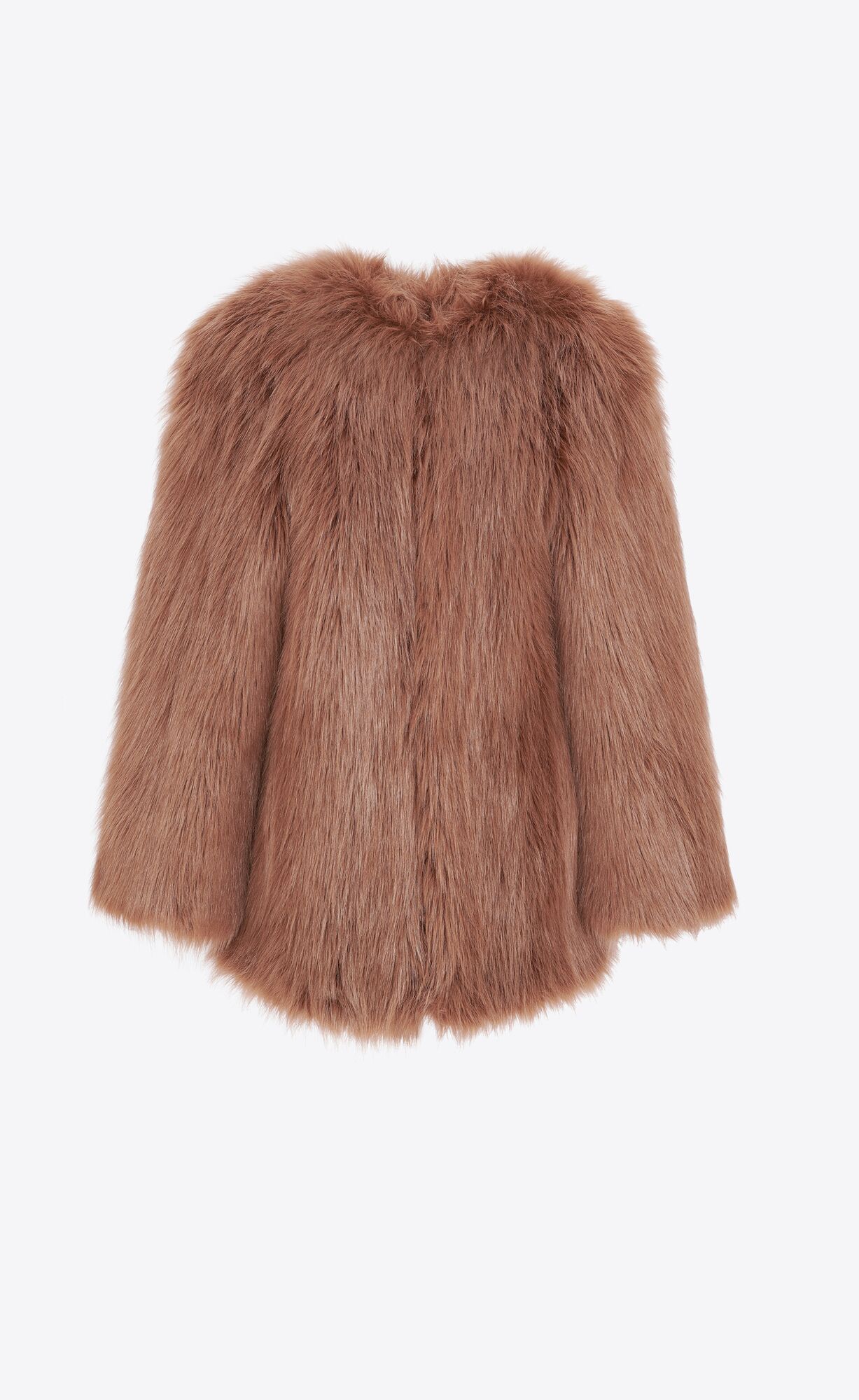 ROUND-NECK COAT WITH HOOK CLOSURE AND SIDE POCKETS.
