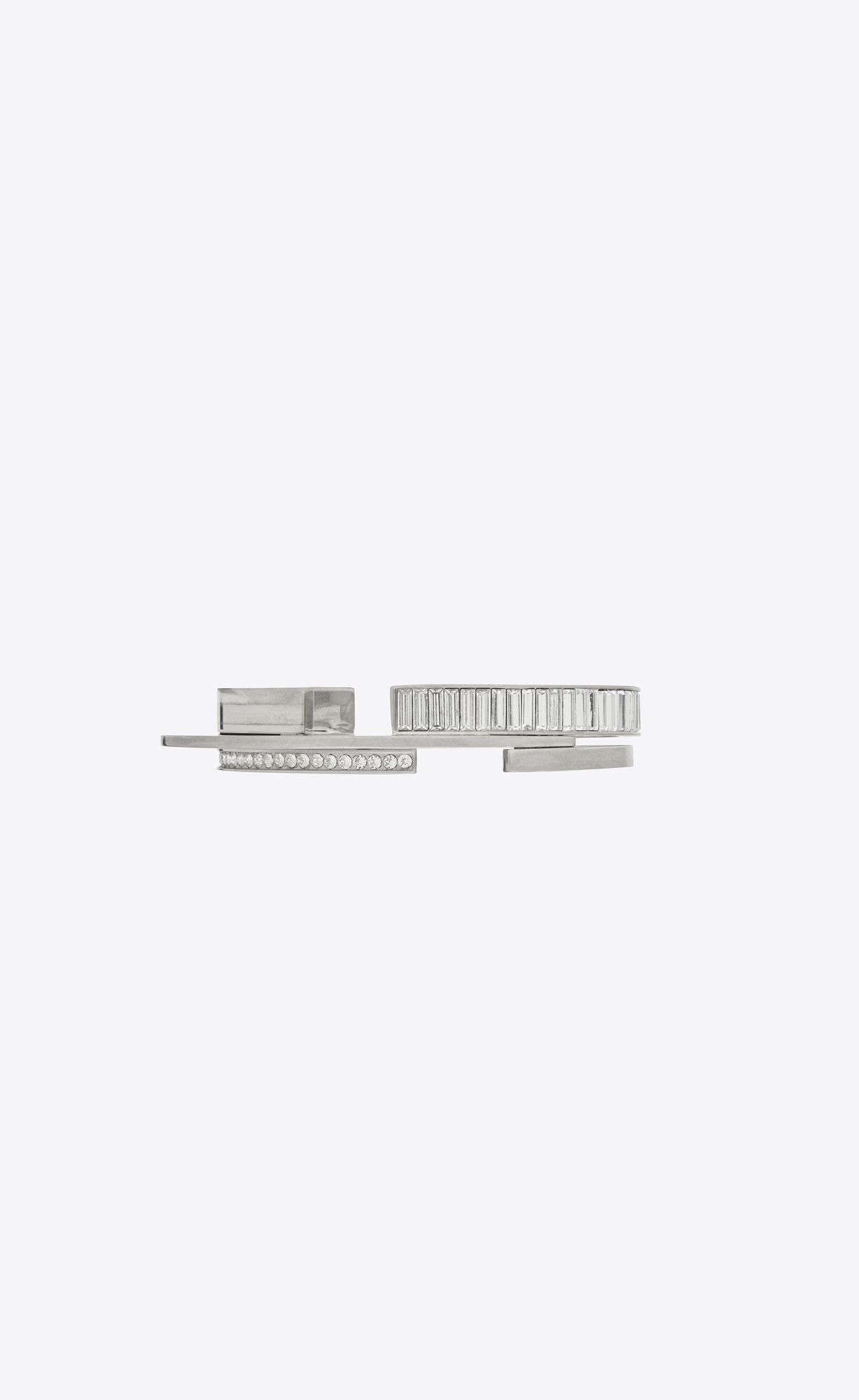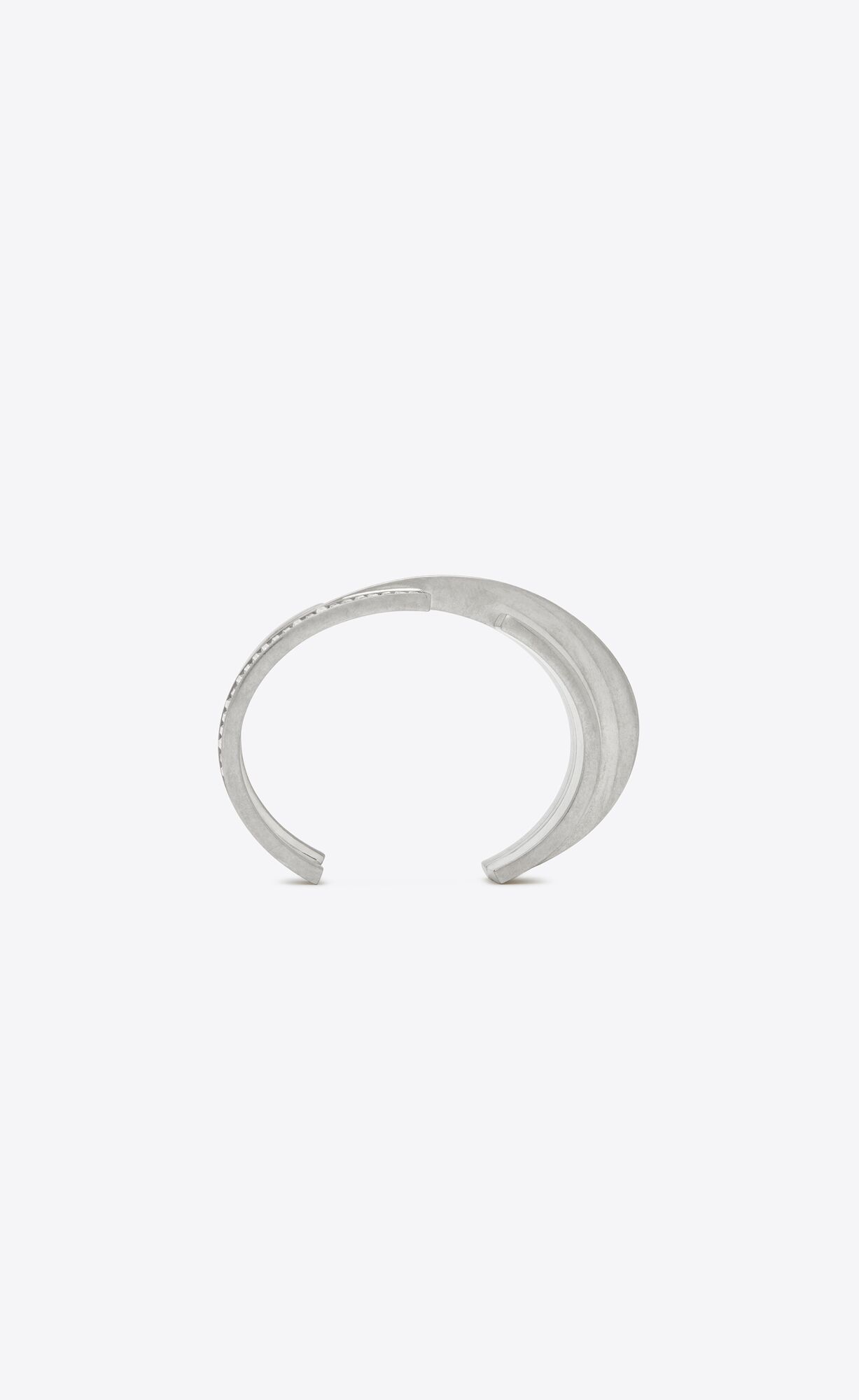 Asymmetrical multi-layer cuff bracelet decorated with rhinestones.