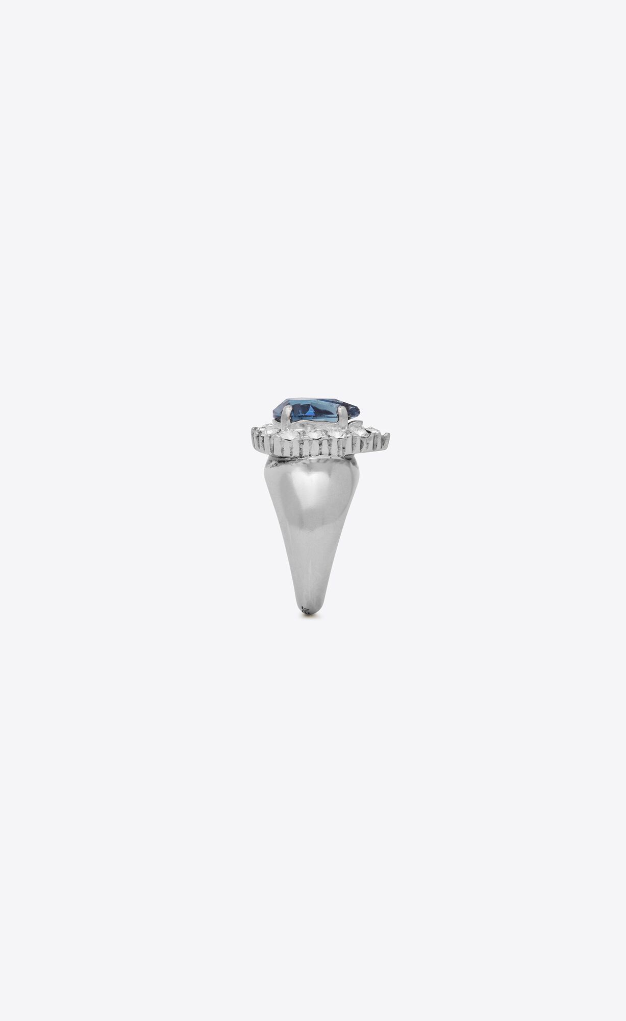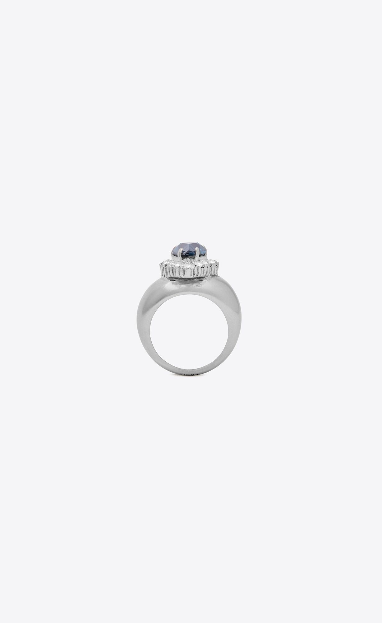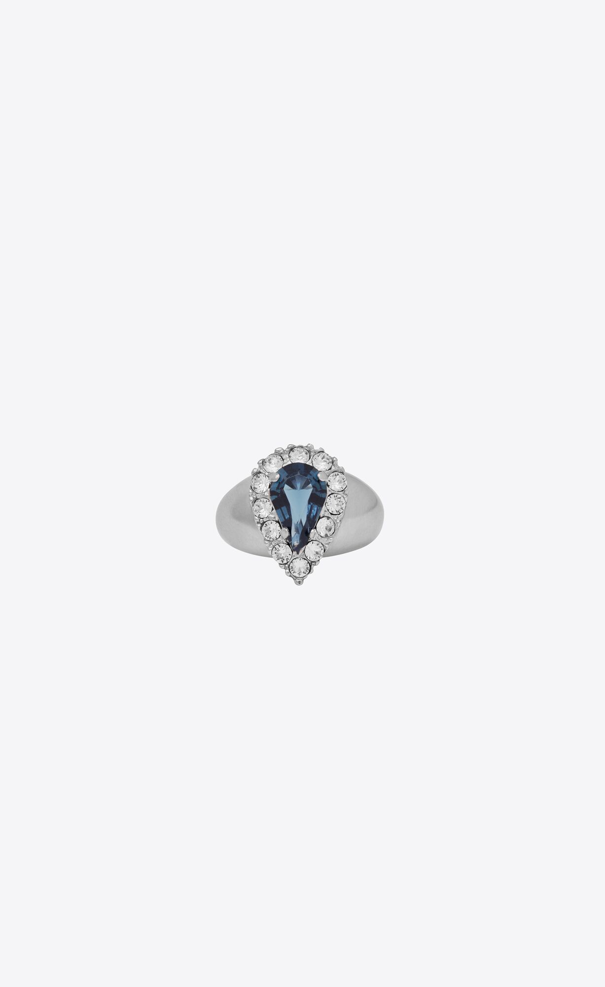 Cocktail ring featuring a pear-cut crystal with a rhinestone halo, set on a dimensional curved shank.