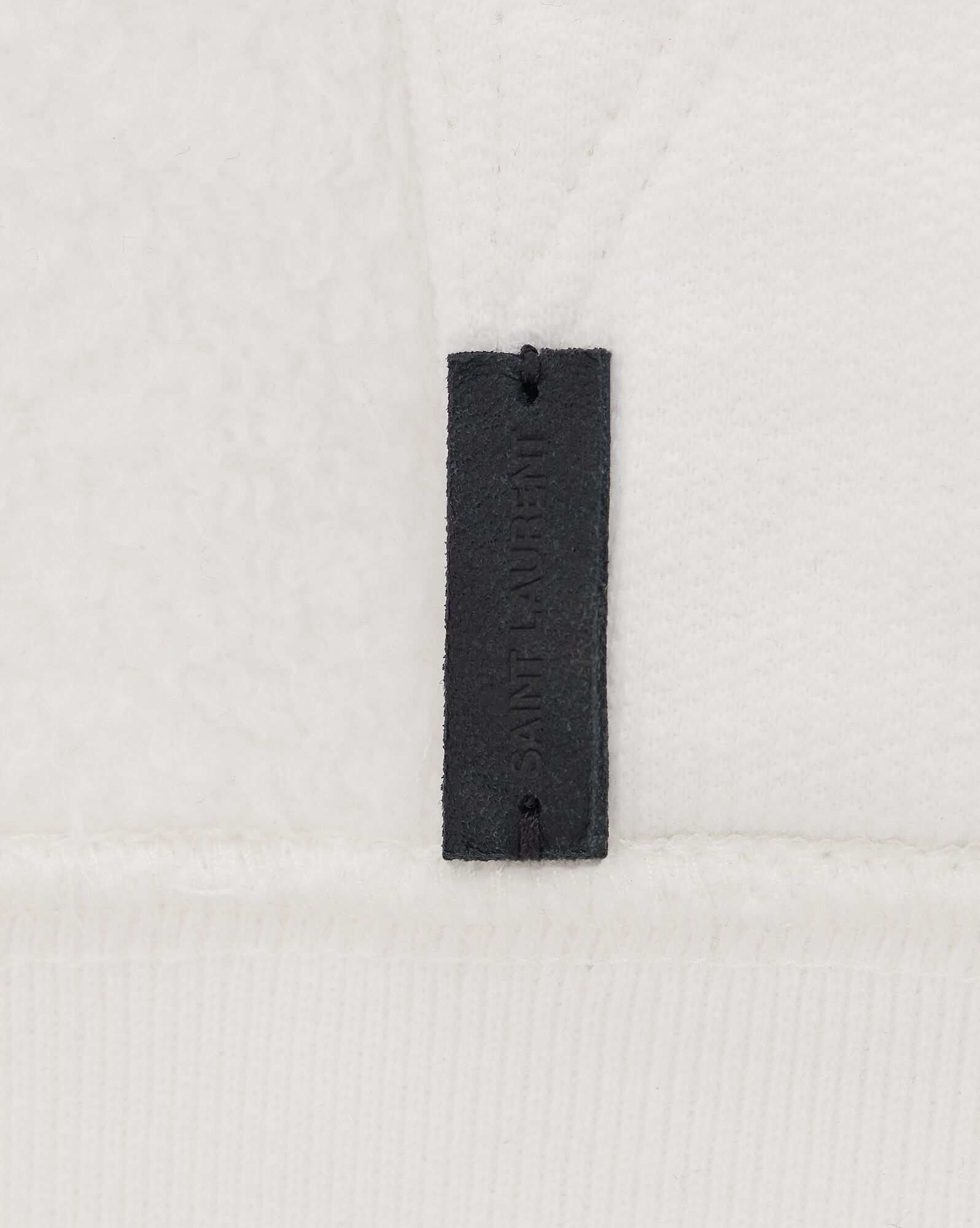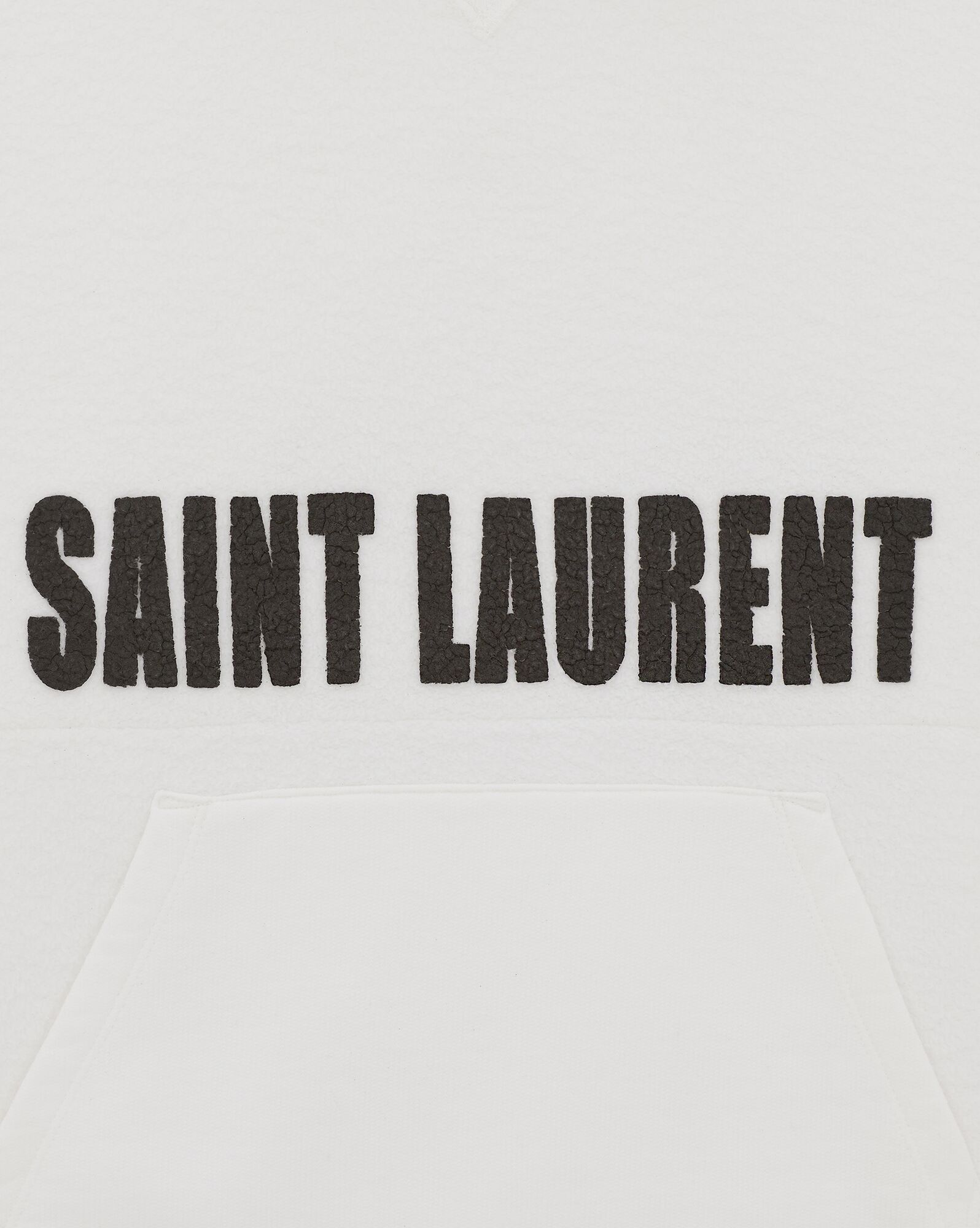 FLEECE HOODIE WITH A KANGAROO POCKET, RIBBED TRIMS AND SAINT LAURENT AGAFAY SHOW PRINTS ON THE FRONT AND BACK.