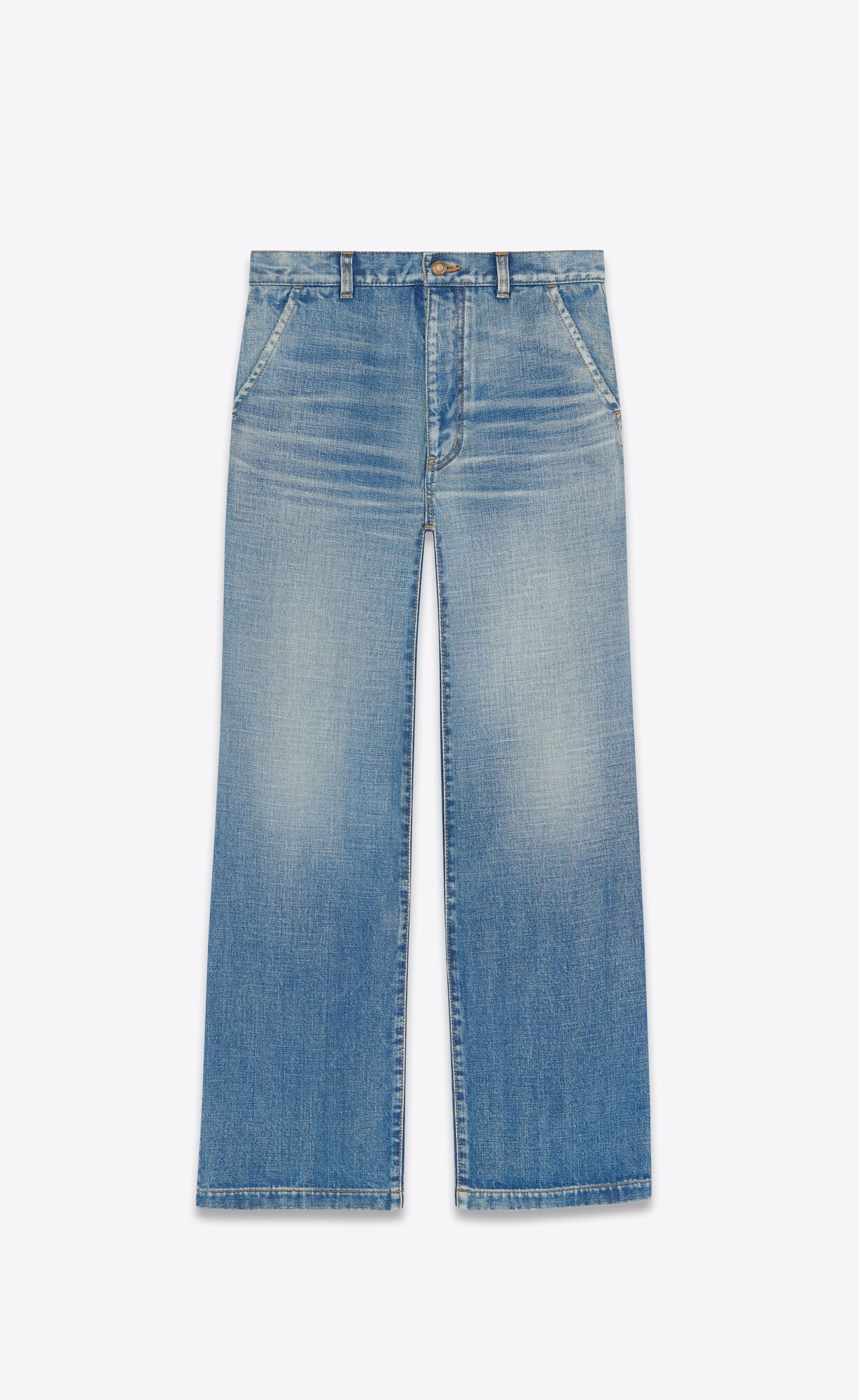 High-waisted wide-leg jeans made with organic cotton, featuring belt loops.