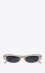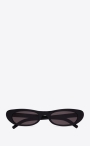 Tortoiseshell sunglasses with narrow elongated cat-eye frames in acetate with nylon lenses.