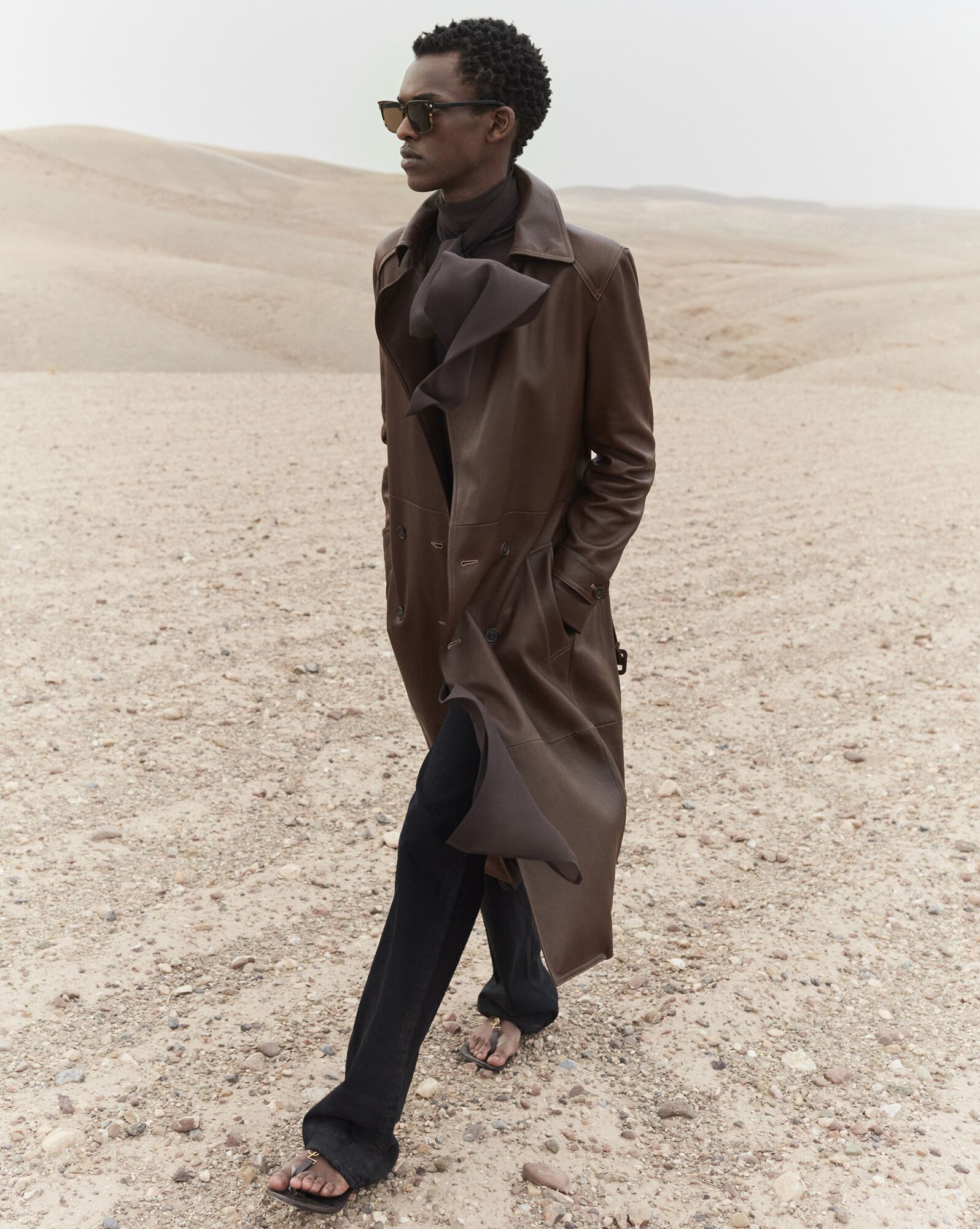 DOUBLE-BREASTED TRENCH COAT WITH NOTCHED LAPEL, ADJUSTABLE BELT, TOPSTITCHING, BACK STORM AND BUTTONED TABS ON THE WRISTS.